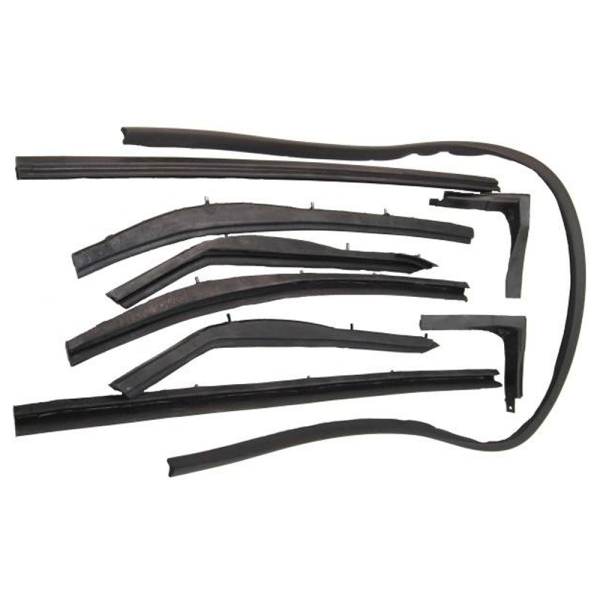Convertible Top Roof Rail Seal Kit.  Replace missing or worn weatherstrips with our top quality, direct fit reproductions to keep your cab quiet and dry.  These high-quality rubber weatherstrips fit on the convertible top and work to seal the side windows when fully raised.