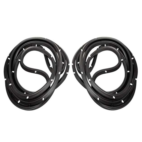 Door Seal Kit. These primary front door weatherstrips mount (pin-on) directly to the left and right doors sealing the full perimeter of the doors against the vehicle body when the door is closed. Includes clips and fasteners for easy installation.