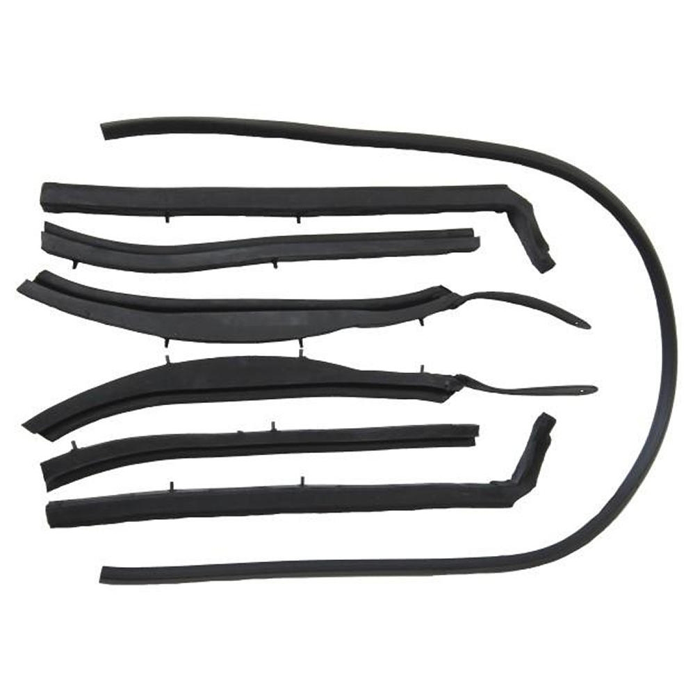 Convertible Top Roof Rail Seal Kit.  Replace missing or worn weatherstrips with our top quality, direct fit reproductions to keep your cab quiet and dry.  These high-quality rubber weatherstrips fit on the convertible top and work to seal the side windows when fully raised.