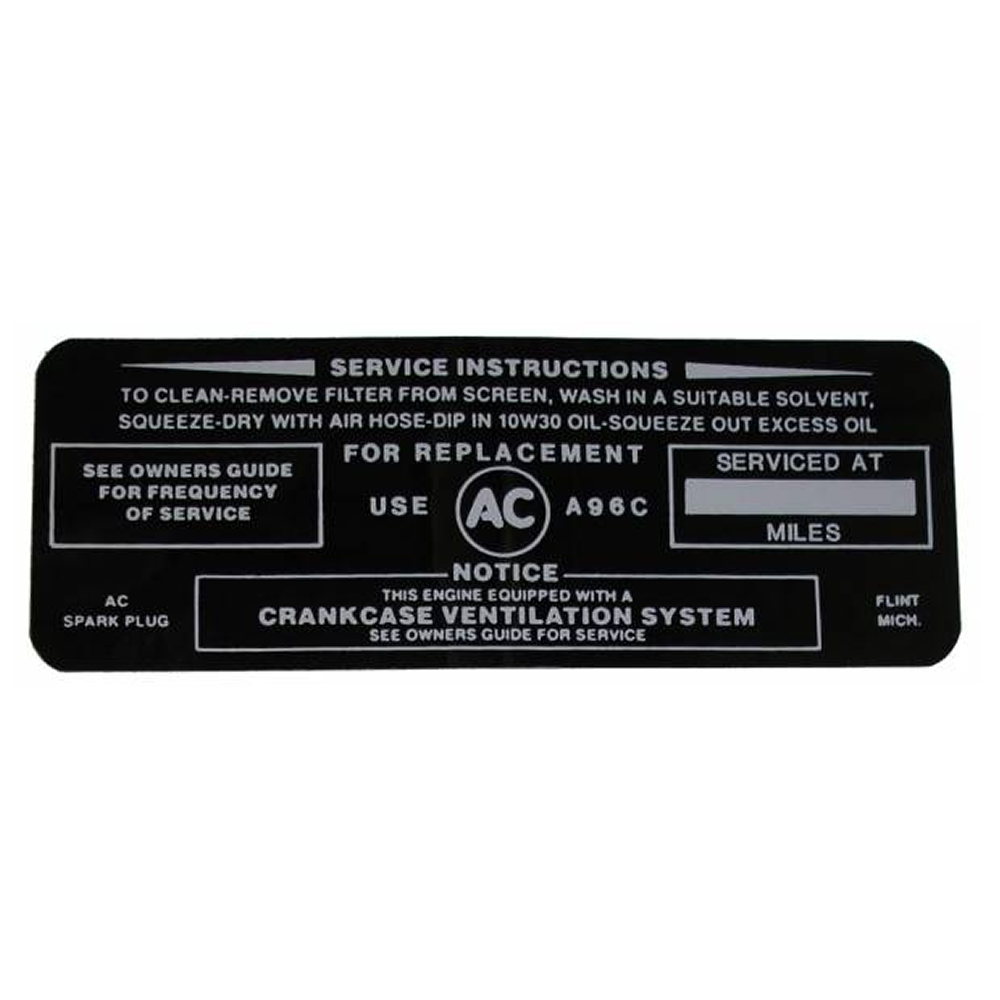 Wildcat 445 air cleaner service instructions decal - filter type A96C. Add that final touch to your restoration. Top quality, officially licensed GM reproduction. Sold individually. MADE IN THE USA.