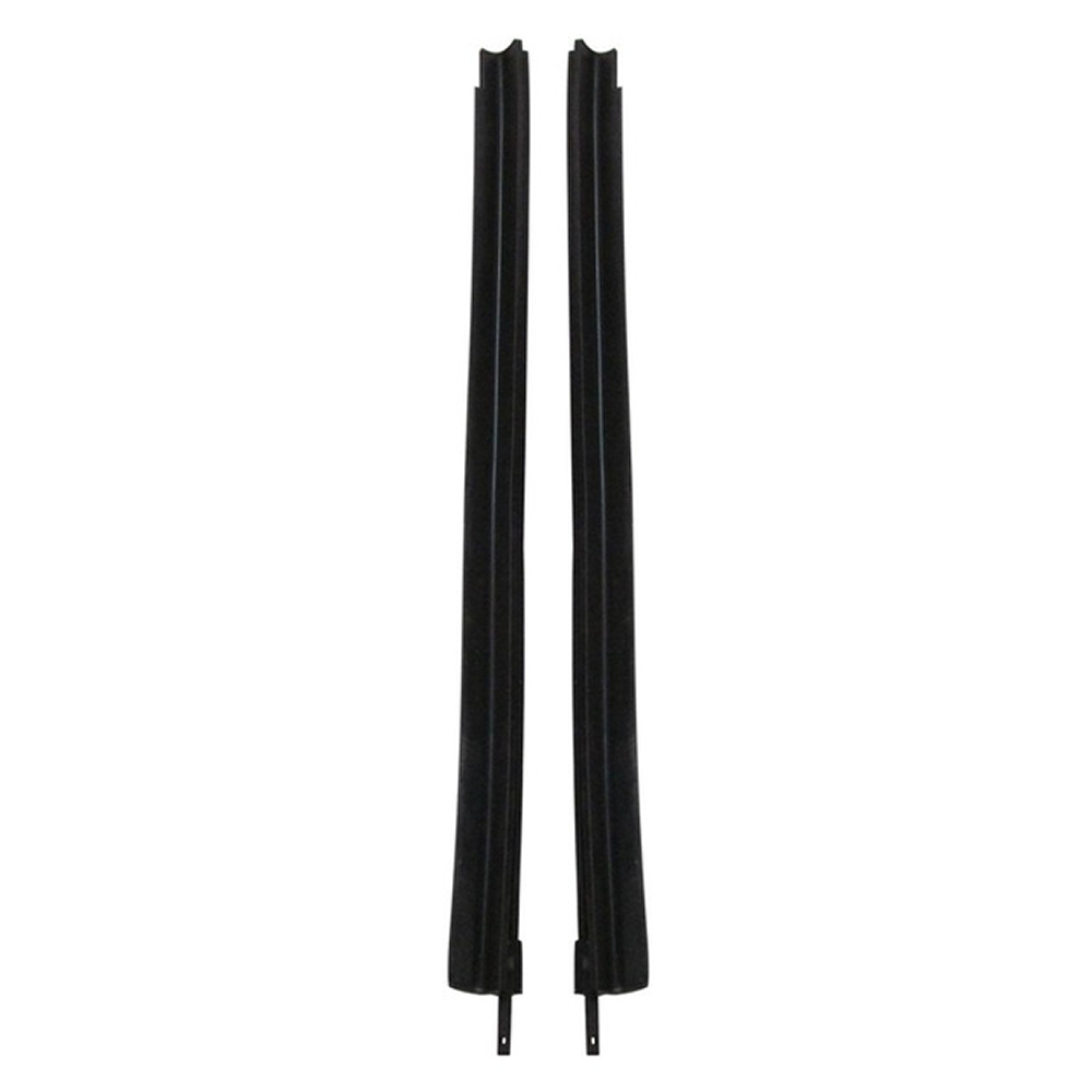 Side Window Leading Edge Seals. This Side To Quarter Window Leading Edge weatherstrip pair attaches to the vertical edge of the rear side windows and seals when the rear side windows are fully raised. Molded authentic rubber construction with metal core.
