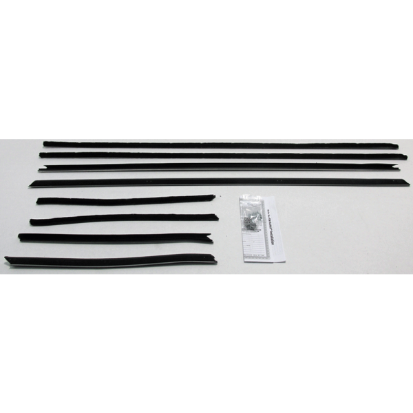 - Complete 8 piece kit for inners and outers on both doors and quarter windows
