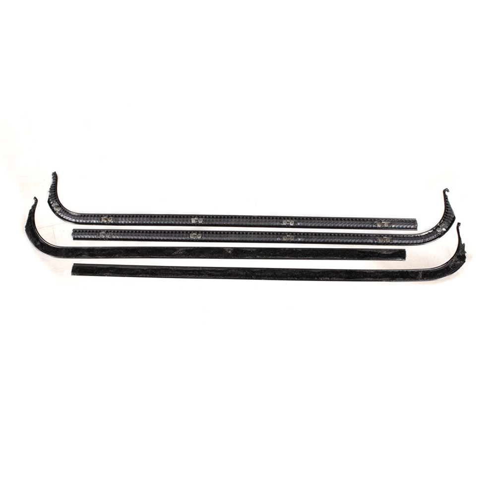 Beltline Weatherstrip - Complete 4 Piece Kit With Black Bead. Sometimes called sweepers, fuzzies, anti-rattlers or felts, these are the horizontal strips at the base of the glass that "brush" or "sweep" the glass as it goes up and down. Poor fitting or worn out seals can leak air and water creating noise, vibration and rust. Protect your ride with our direct fit weatherstrips for a factory look and perfect fit.
