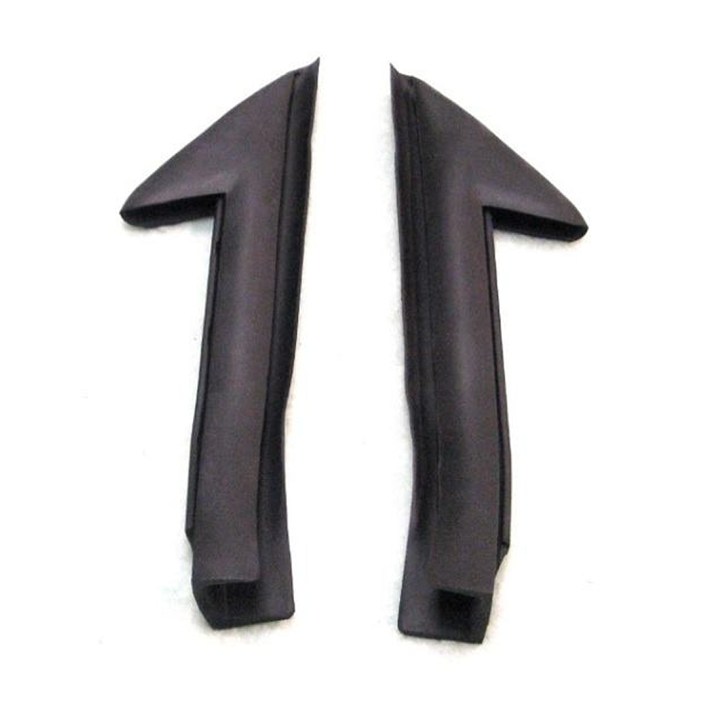 Door Glass Triangle Seal.  This Front Door Glass Channel Triangle Weatherstrip pair is manufactured to OEM specifications to install for an authentic fit, finish and function.  Correct six (6") inch vertical seals at the front edge of the door glass.  These weatherstrips install behind the left and right side rear view mirrors attaching to the corner filler at the front of each side window.
