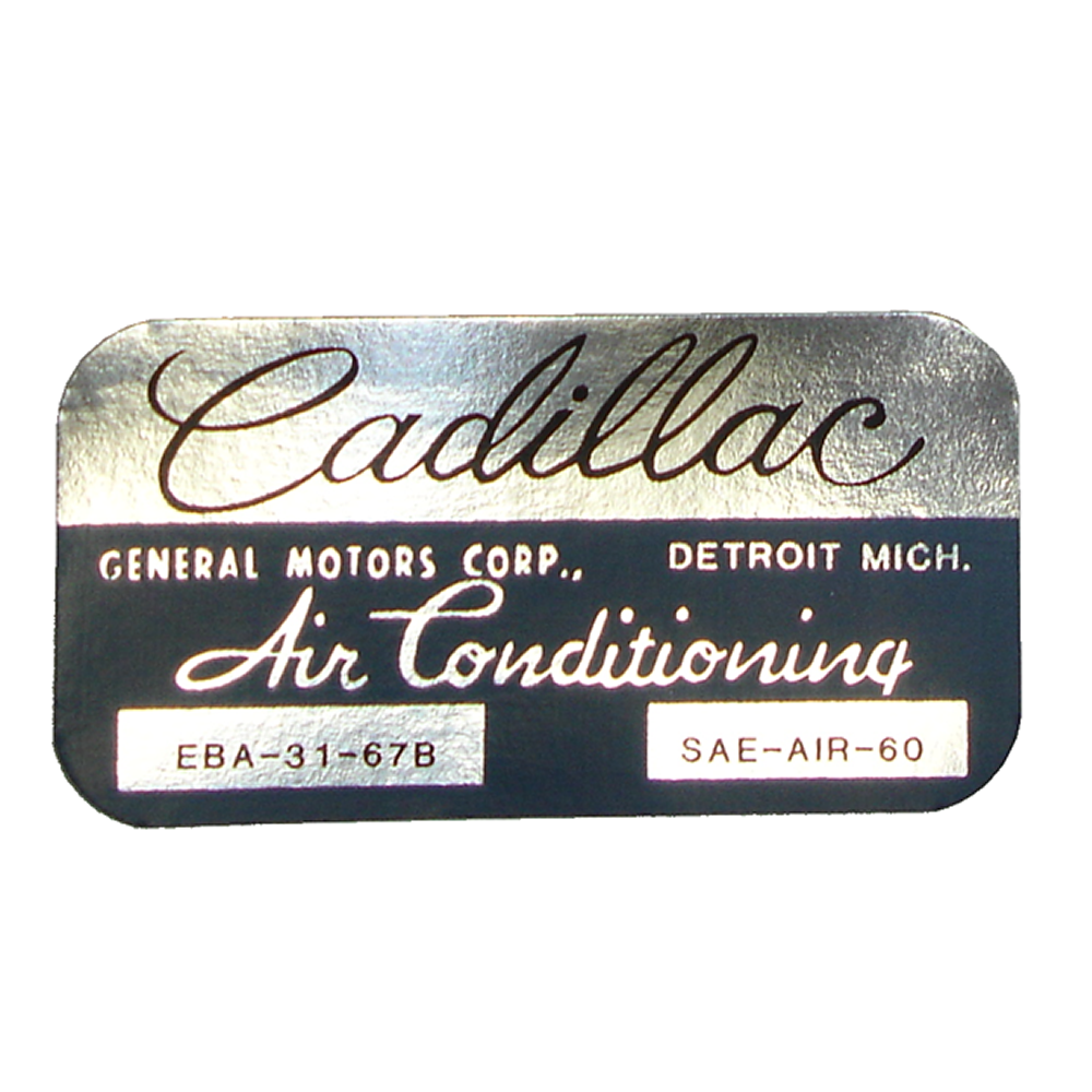 Air conditioner evaporator box decal - "Cadillac." Replaces original GM part #EBA3167B. Top quality GM licensed reproduction. Sold individually. MADE IN THE USA.