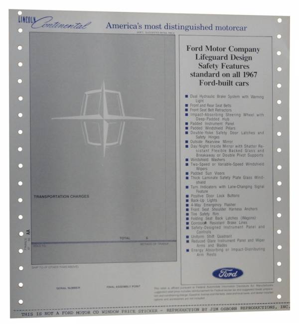 New car window price sticker. Replaces original part #AT66AA. Add that final touch to your restoration. Top quality, officially licensed reproduction. MADE IN THE USA.
