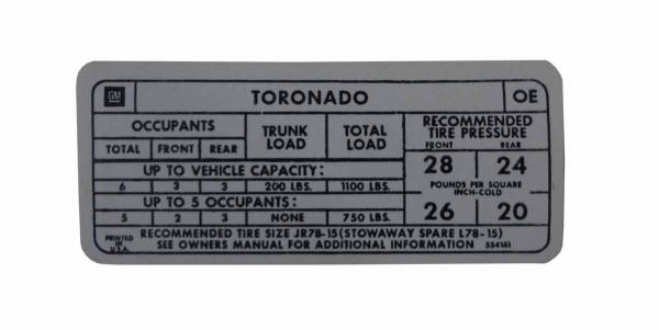 Tire pressure decal. Add that final touch to your restoration. Replaces original GM part #554161. Top quality, official GM reproduction, MADE IN THE USA.