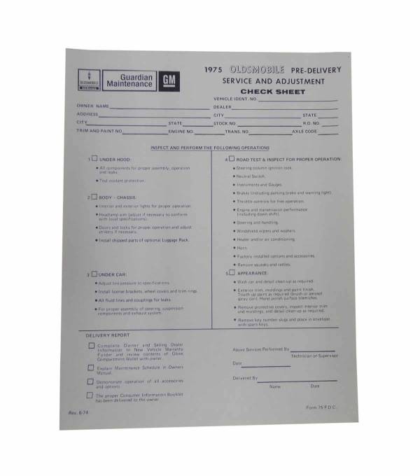 New vehicle pre-delivery sheet. Add that final touch to your restoration. Top quality, official GM reproduction, MADE IN THE USA.