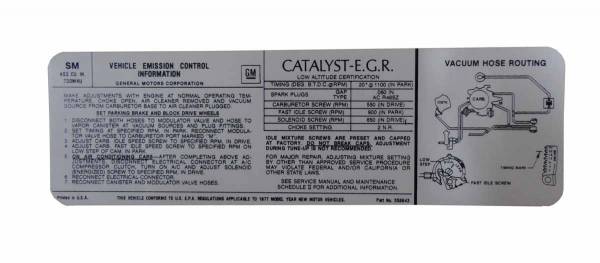 Emission decal - for 442 models with automatic transmission & 403. Replaces original GM part #SM 558643. Top quality, official GM reproduction, MADE IN THE USA.
