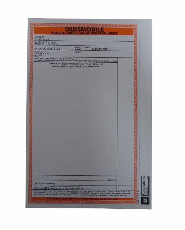 New car window price sheet. Add that final touch to your restoration. Top quality, official GM reproduction, MADE IN THE USA.