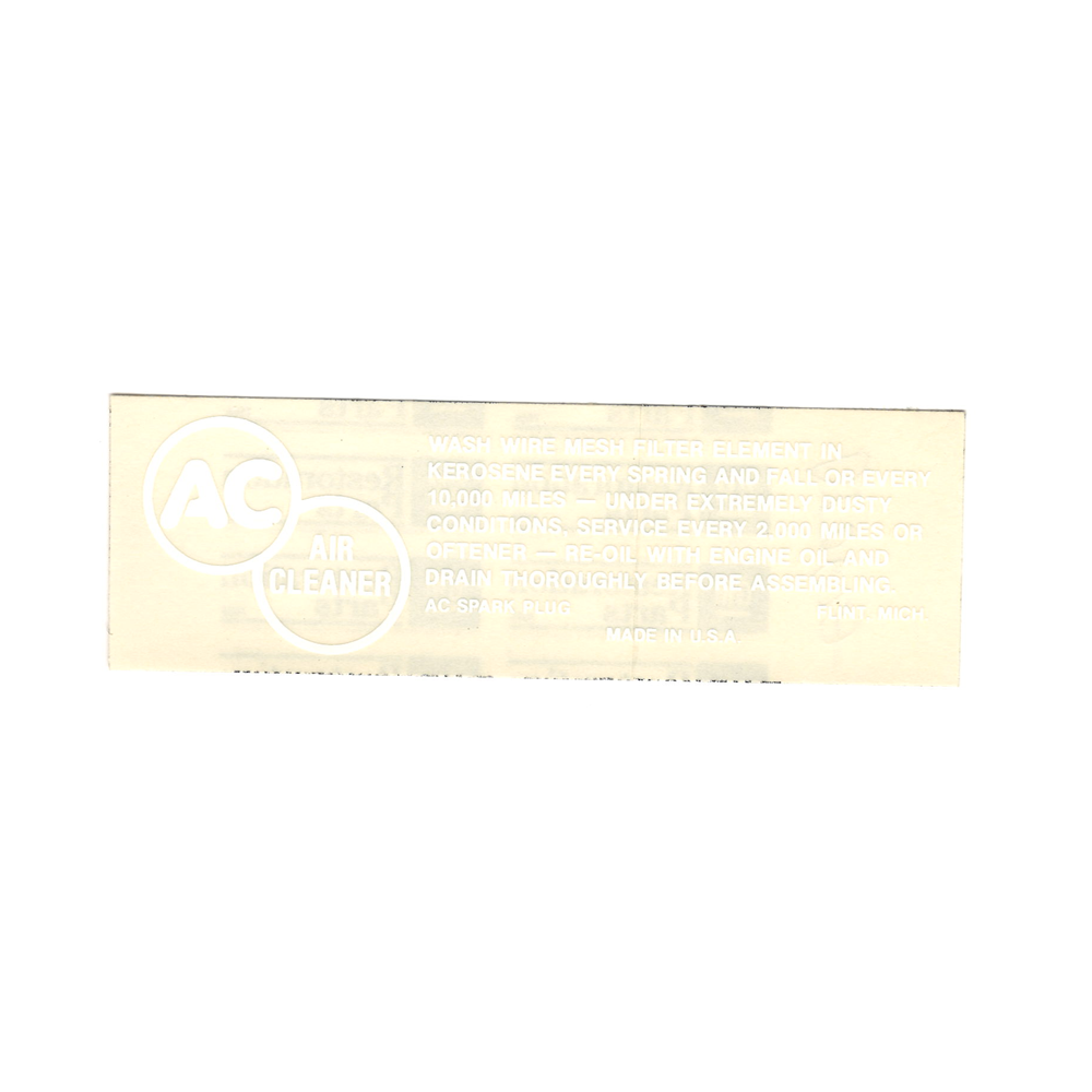 Air Cleaner Service Instructions Decal. Nothing adds that final touch like the proper decals. Our American Made reproductions will make your car stand out!