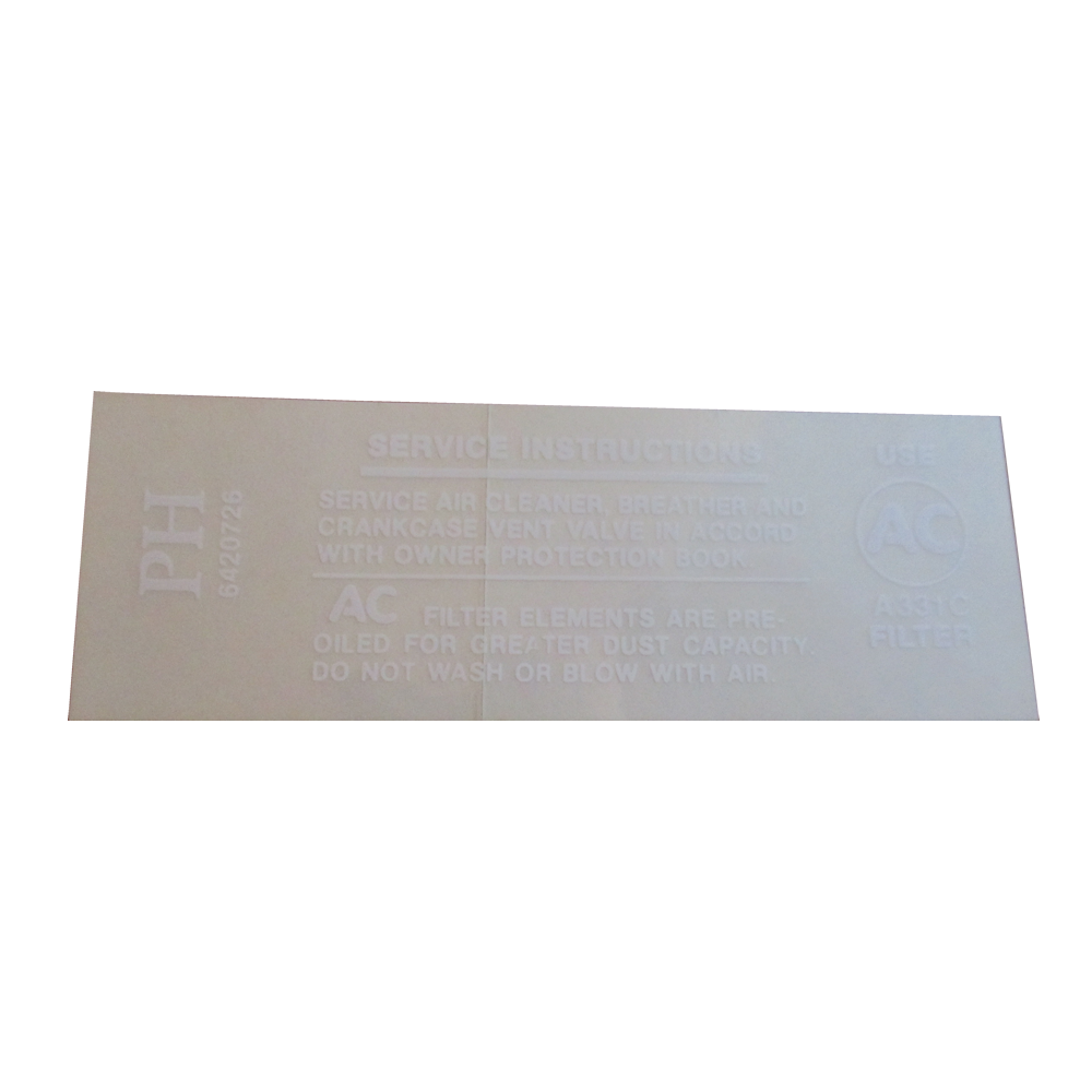 Air Cleaner Service Instructions Decal. Nothing adds that final touch like the proper decals. Our American Made reproductions will make your car stand out!