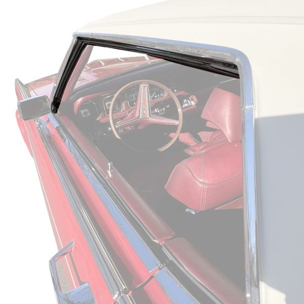 - Attaches along a pillar and roof line - these are the seals the side glass "rolls up" into