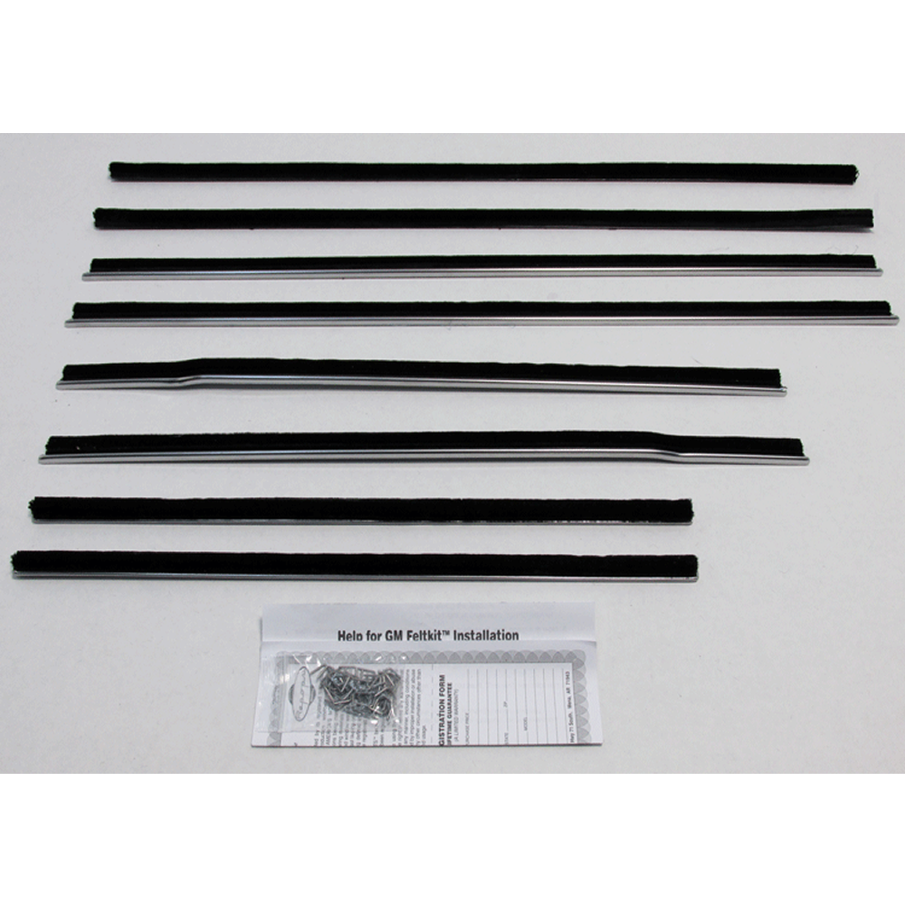 Beltline Weatherstrip - Complete 8 Piece Kit. Sometimes called sweepers, fuzzies or felts, these are the horizontal strips at the base of the glass that "brush" or "sweep" the glass as it goes up and down. Replacing seals & weatherstrips not only improves the look of your vehicle but it also makes for a quieter cab and protects from water damage. Poor fitting or worn out seals can leak air and water creating noise, vibration and rust. Protect your ride with our direct fit, AMERICAN MADE weatherstrips for a factory look and perfect fit.
