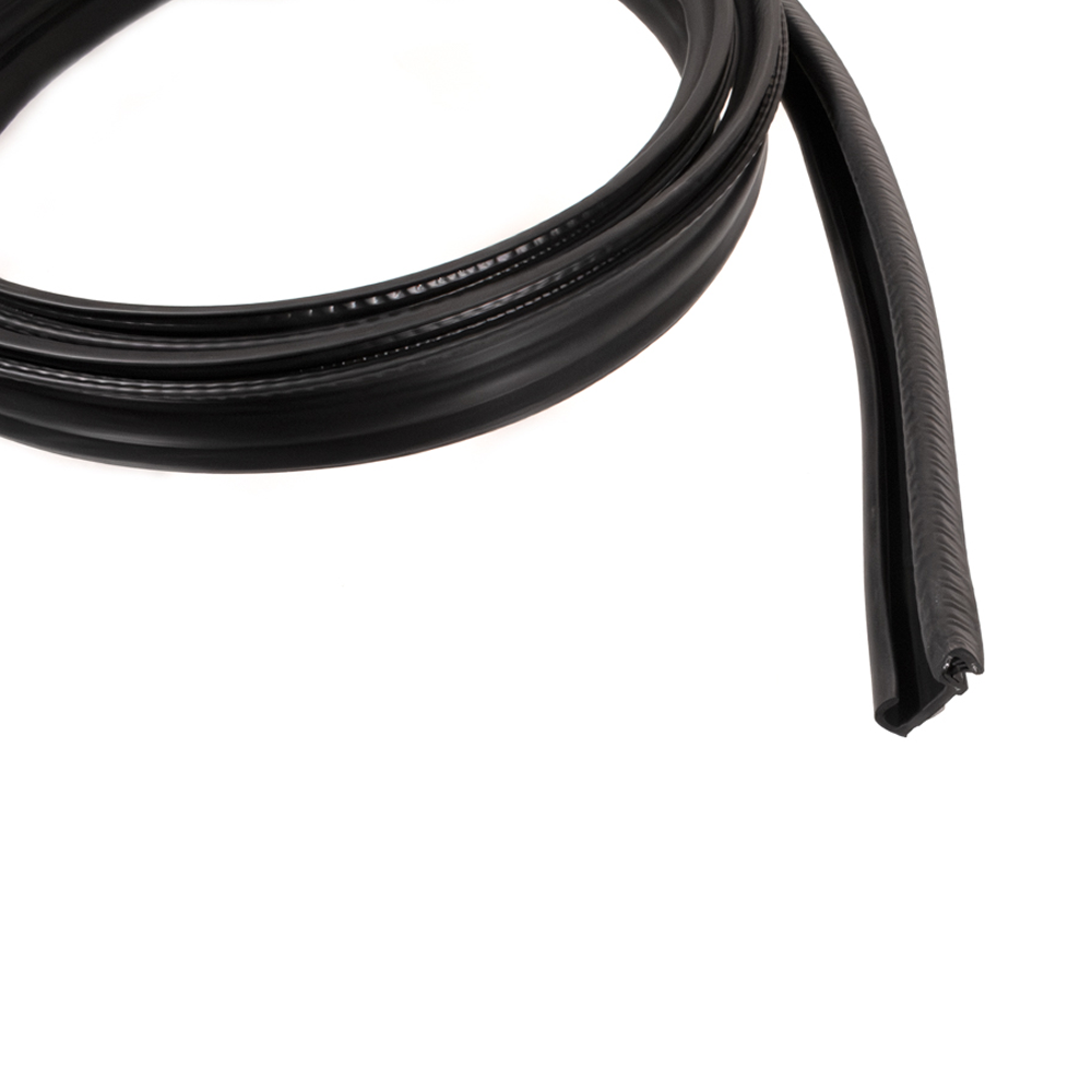 Upper Door Seal - Passenger (RH) Side. This seal attaches on the a-pillar and along the upper part of both front and rear doors. This is for the right side. It's made from high quality ozone resistant EPDM rubber.