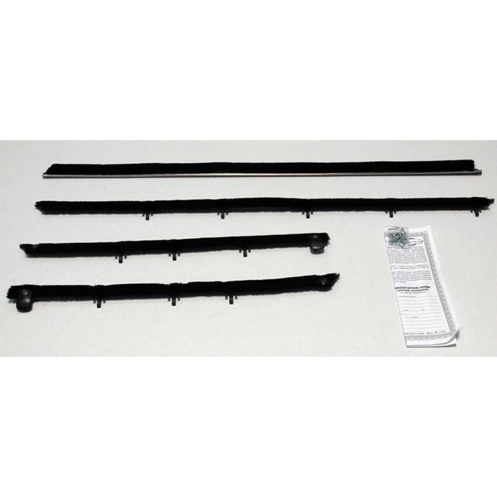 Beltline Weatherstrip - Outer 4 Piece Kit. Sometimes called sweepers, fuzzies or felts, these are the horizontal strips at the base of the glass that "brush" or "sweep" the glass as it goes up and down. Replacing seals & weatherstrips not only improves the look of your vehicle but it also makes for a quieter cab and protects from water damage. Poor fitting or worn out seals can leak air and water creating noise, vibration and rust. Protect your ride with our direct fit AMERICAN MADE weatherstrips for a factory look and perfect fit.