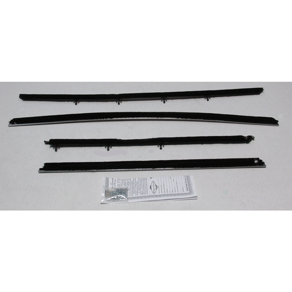 Beltline Weatherstrip - Outer 4 Piece Kit. Sometimes called sweepers, fuzzies or felts, these are the horizontal strips at the base of the glass that "brush" or "sweep" the glass as it goes up and down. Replacing seals & weatherstrips not only improves the look of your vehicle but it also makes for a quieter cab and protects from water damage. Poor fitting or worn out seals can leak air and water creating noise, vibration and rust. Protect your ride with our direct fit AMERICAN MADE weatherstrips for a factory look and perfect fit.