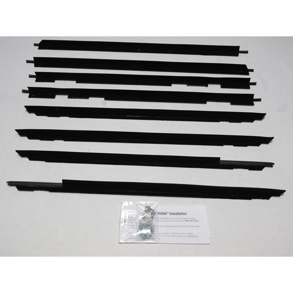 Beltline Weatherstrip - Complete 8 Piece Kit. Sometimes called sweepers, fuzzies or felts, these are the horizontal strips at the base of the glass that "brush" or "sweep" the glass as it goes up and down. Replacing seals & weatherstrips not only improves the look of your vehicle but it also makes for a quieter cab and protects from water damage. Poor fitting or worn out seals can leak air and water creating noise, vibration and rust. Protect your ride with our direct fit AMERICAN MADE weatherstrips for a factory look and perfect fit.