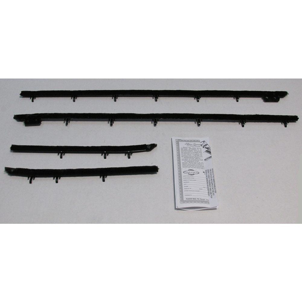 Beltline Weatherstrip - Outer 4 Piece Kit. Sometimes called sweepers, fuzzies or felts, these are the horizontal strips at the base of the glass that "brush" or "sweep" the glass as it goes up and down. Replacing seals & weatherstrips not only improves the look of your vehicle but it also makes for a quieter cab and protects from water damage. Poor fitting or worn out seals can leak air and water creating noise, vibration and rust. Protect your ride with our direct fit AMERICAN MADE weatherstrips for a factory look and perfect fit.