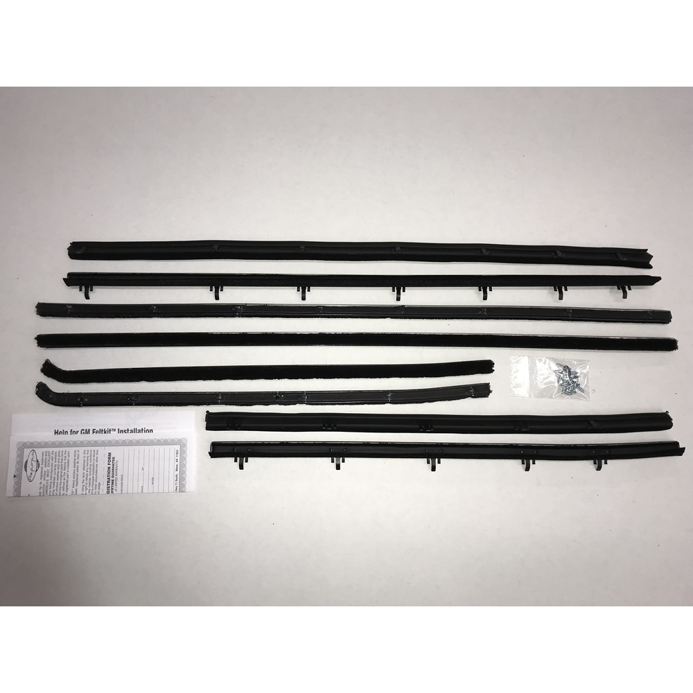 Beltline Weatherstrip - Complete 8 Piece Kit. Sometimes called sweepers, fuzzies or felts, these are the horizontal strips at the base of the glass that "brush" or "sweep" the glass as it goes up and down. Replacing seals & weatherstrips not only improves the look of your vehicle but it also makes for a quieter cab and protects from water damage. Poor fitting or worn out seals can leak air and water creating noise, vibration and rust. Protect your ride with our direct fit weatherstrips for a factory look and perfect fit.