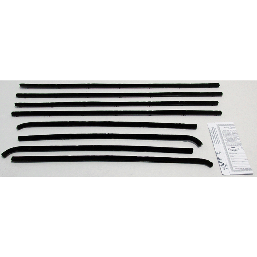 - Eight (8) piece kit includes inner & outer beltline weatherstrips on both driver (LH) & passenger (RH) doors & quarter windows