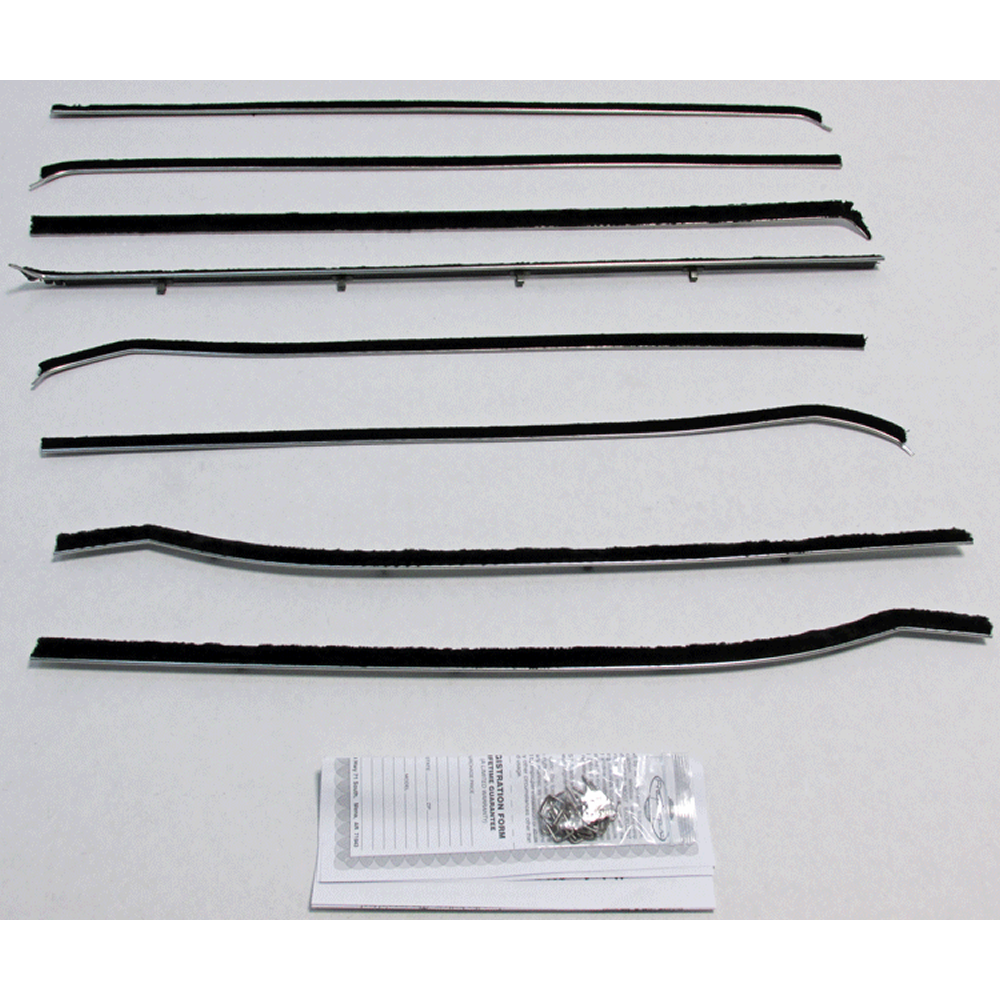 Beltline Weatherstrip - Complete 8 Piece Kit. Sometimes called sweepers, fuzzies or felts, these are the horizontal strips at the base of the glass that "brush" or "sweep" the glass as it goes up and down. Replacing seals & weatherstrips not only improves the look of your vehicle but it also makes for a quieter cab and protects from water damage. Poor fitting or worn out seals can leak air and water creating noise, vibration and rust. Protect your ride with our direct fit AMERICAN MADE weatherstrips for a factory look and perfect fit.