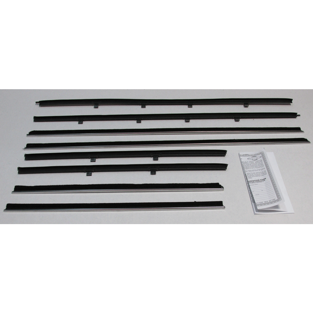 - Eight (8) piece kit includes inner & outer beltline weatherstrips on both driver (LH) & passenger (RH) doors & quarter windows