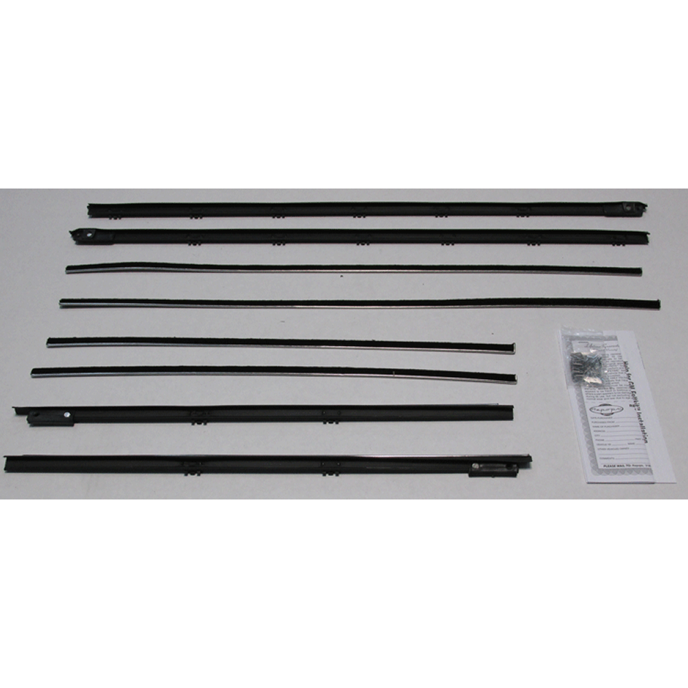 - Eight (8) piece kit includes inner & outer beltline weatherstrips on both driver (LH) & passenger (RH) side doors & quarter windows