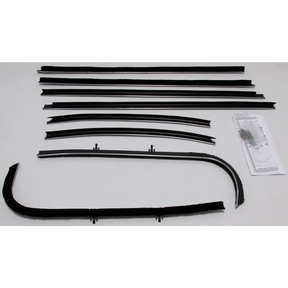 Beltline Weatherstrip - Complete 8 Piece Kit. Sometimes called sweepers, fuzzies or felts, these are the horizontal strips at the base of the glass that "brush" or "sweep" the glass as it goes up and down. Protect your ride with our direct fit AMERICAN MADE weatherstrips for a factory look and perfect fit.