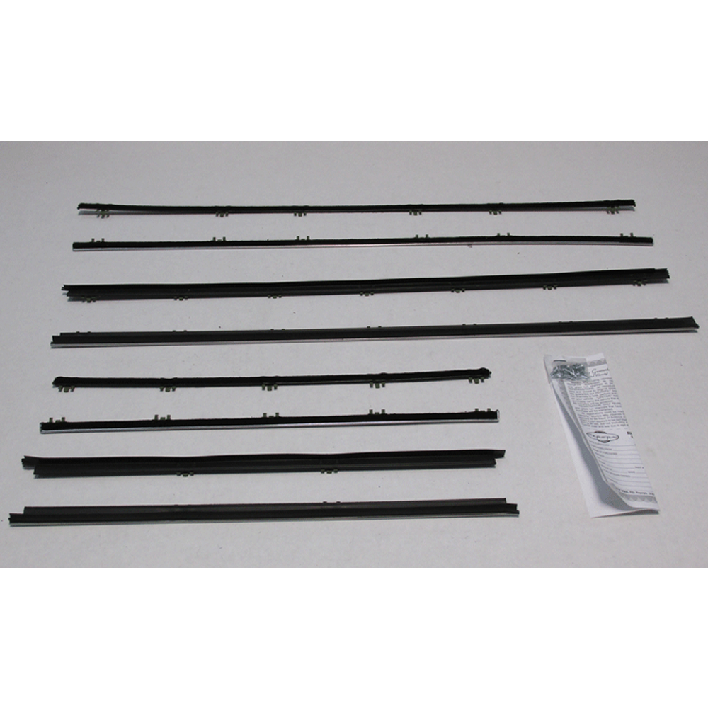Beltline Weatherstrip - Complete 8 Piece Kit. Sometimes called sweepers, fuzzies or felts, these are the horizontal strips at the base of the glass that "brush" or "sweep" the glass as it goes up and down. Protect your ride with our direct fit AMERICAN MADE weatherstrips for a factory look and perfect fit.