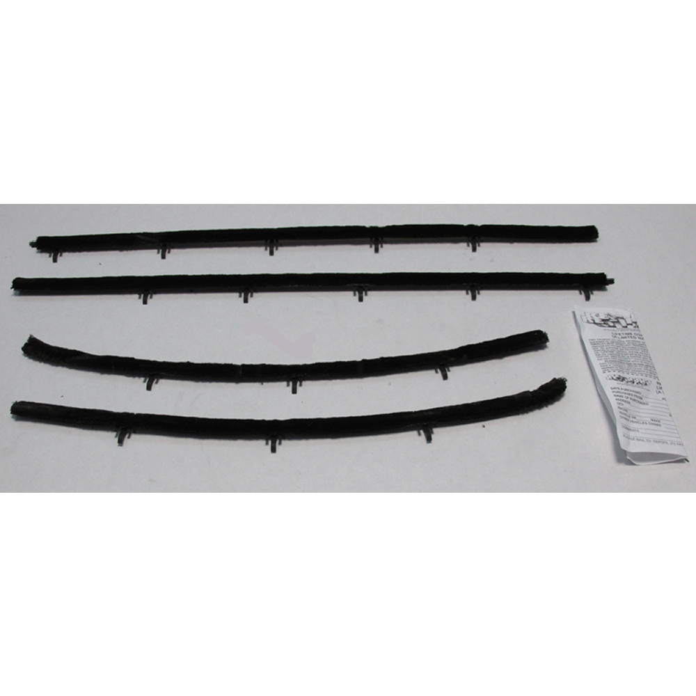 Beltline Weatherstrip - Outer 4 Piece Kit. Sometimes called sweepers, fuzzies or felts, these are the horizontal strips at the base of the glass that "brush" or "sweep" the glass as it goes up and down. Poor fitting or worn out seals can leak air and water creating noise, vibration and rust. Protect your ride with our direct fit AMERICAN MADE weatherstrips for a factory look and perfect fit.