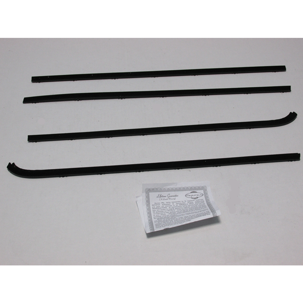 Beltline Weatherstrip - Outer 4 Piece Kit. Sometimes called sweepers, fuzzies or felts, these are the horizontal strips at the base of the glass that "brush" or "sweep" the glass as it goes up and down. Replacing seals & weatherstrips not only improves the look of your vehicle but it also makes for a quieter cab and protects from water damage. Poor fitting or worn out seals can leak air and water creating noise, vibration and rust. Protect your ride with our direct fit, AMERICAN MADE weatherstrips for a factory look and perfect fit.