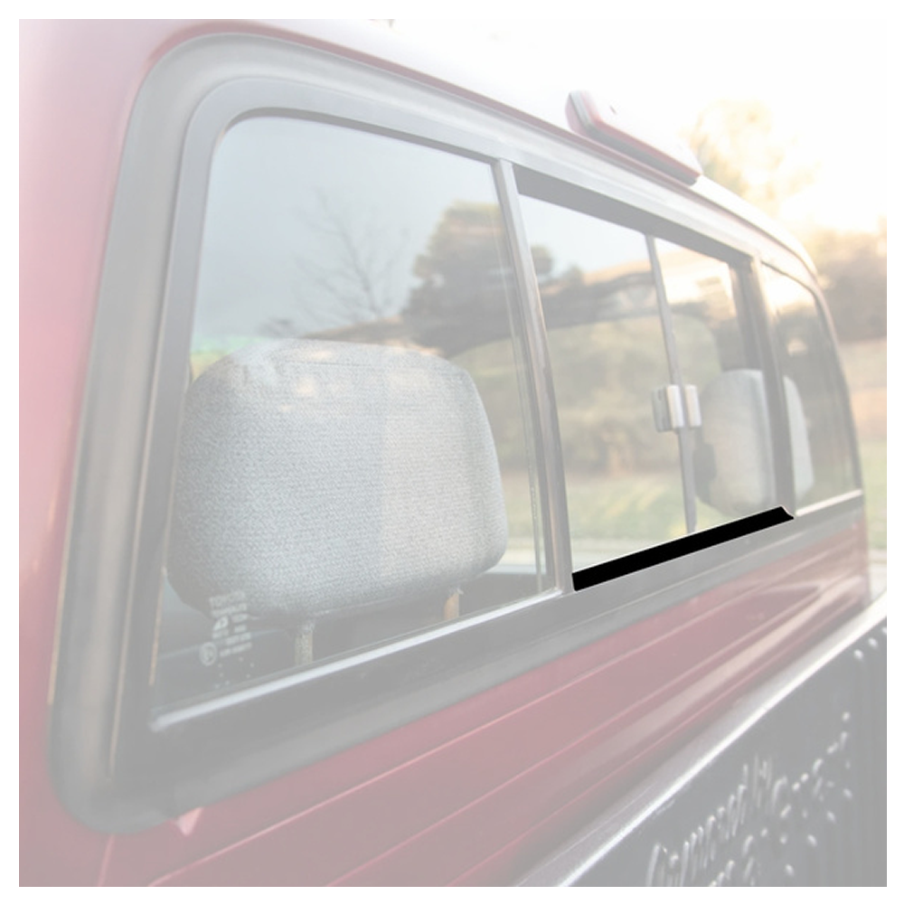 Rear Sliding Window Lower Weatherstrip. This American Made Sliding Rear Window Lower Weatherstrip is designed from the original part for an authentic fit, finish and function. This flocked dense rubber weatherstrips fits at the bottom of the rear window sliding glass.