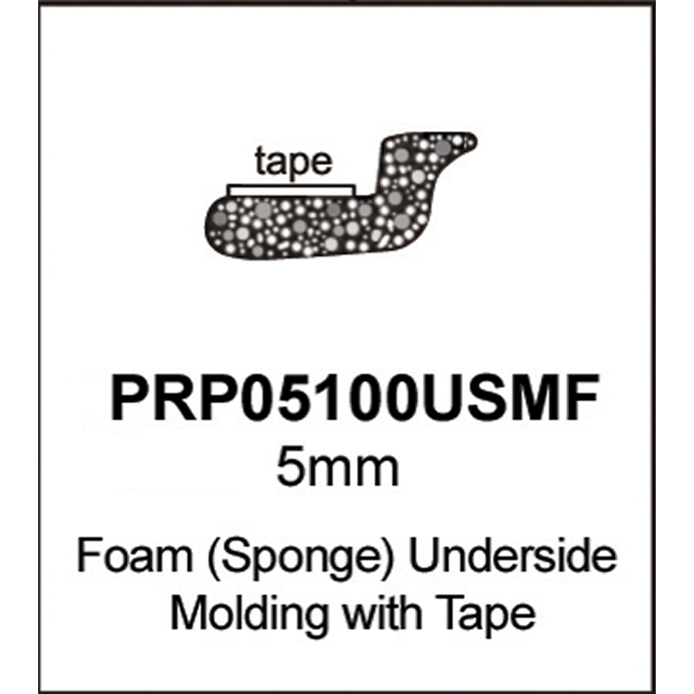 Universal Underside Glass Molding - 5mm. Universal underside glass molding made from high quality sponge rubber to withstand a large temperature range. Stays flexible in cold that also doesn't shrink. The pre-applied adhesive tape aggressively bonds the molding to the glass.