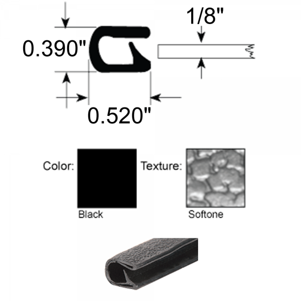 Quick Edge Trim / Windlace - Single Lip / Black Sof-Tone / 1/8"-3/16" Edge